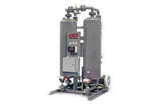 Gardner Denver, DPB Series range from 500-4300 cfm. The DPB is specifically designed for customers who do not want to have any purge air but require negative dew points. The Gardner Denver DPB can have temperature dew point spikes because it uses blower to regenerate the air. However, the DPB has an option that uses 2% of the rated capacity of the air dryer to achieve dew points as low as -100 degrees Fahrenheit.